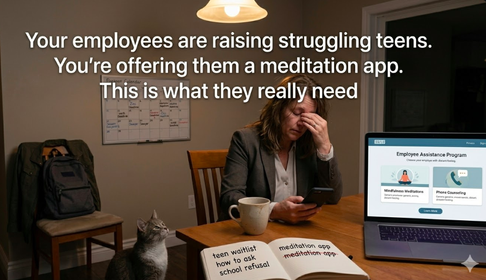 In a 100-employee company, roughly 14 employees may be dealing with a struggling teen right now. If even 3 of them leave this year because they couldn’t hold it together, and the cost of replacing each one is conservatively 6 months of their salary, you’re looking at a number that would fund a year’s worth of parent support programming several times over.