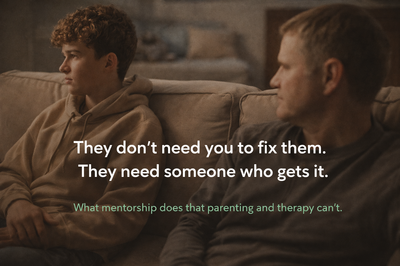 We connect teens with trained mentors who meet them where they are. Not as therapists. Not as parents. As someone safe, consistent, and outside the family system. Someone your kid might actually talk to.