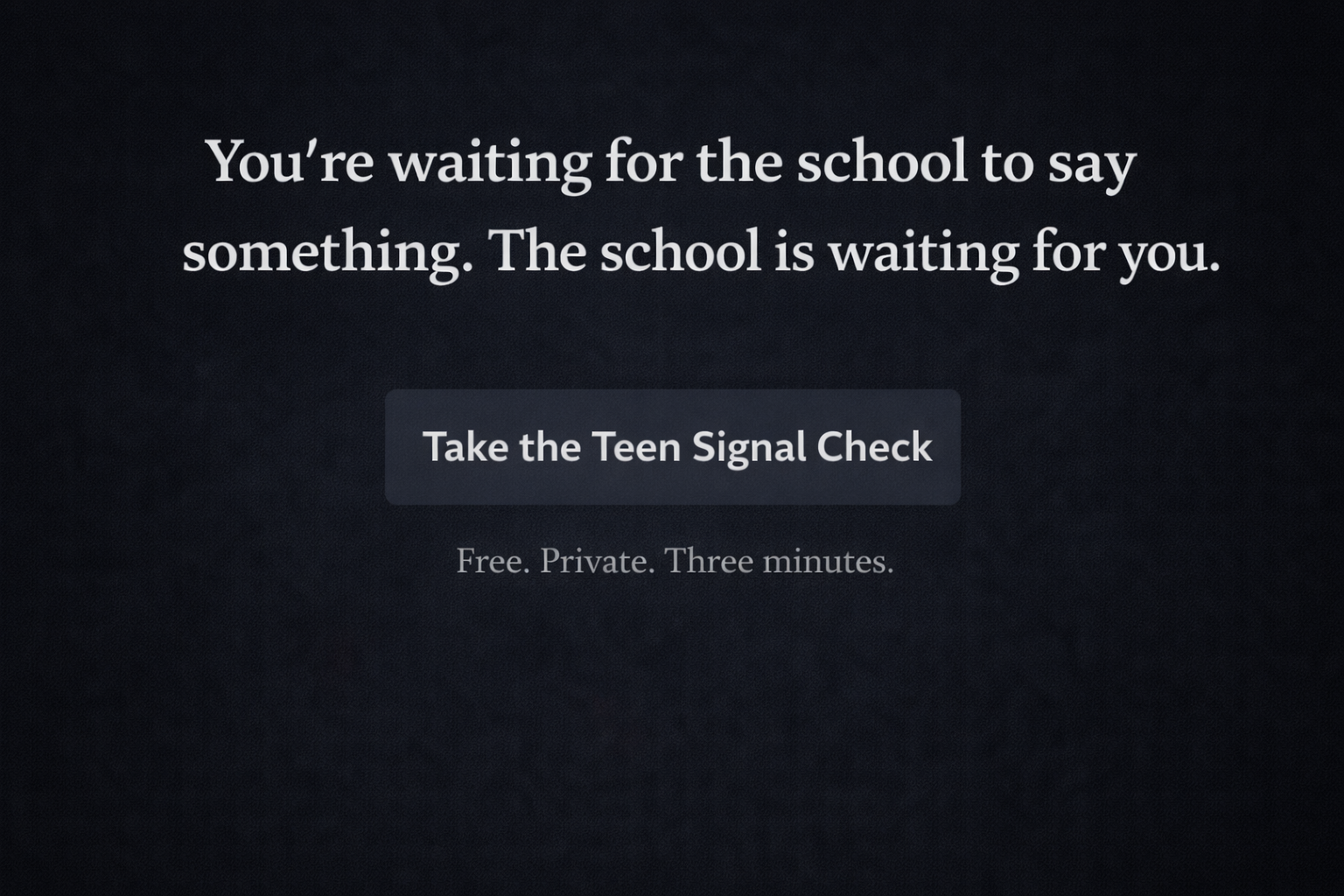If you’re not sure what you’re seeing in your teen, start with the Teen Signal Check. It’s a free, private 12-question tool that helps you sort what you’re noticing into clear next steps. Three minutes. No login. No data shared.