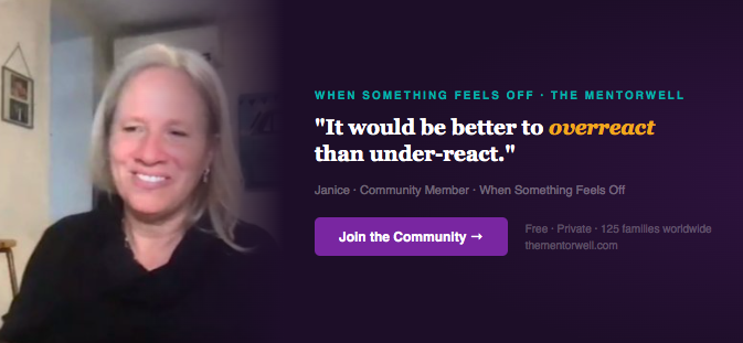 When Something Feels Off is a private, live parent support community. We meet regularly on calls. Between calls, parents share in the group, questions, wins, hard moments, things they noticed that week and aren't sure what to do with.